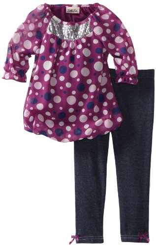 Little lass offers cute and comfortable styles with quality construction. She is adorable in this 2 piece set featuring a dress and legging set.